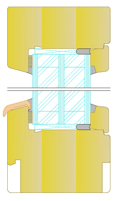 - Visi mediniai langai turi dvi sandarinimo tarpines visu lango ar lauko durų varstymo perimetru. Aliuminio ekranu kaustyti langai turi papildomą tarpinę.