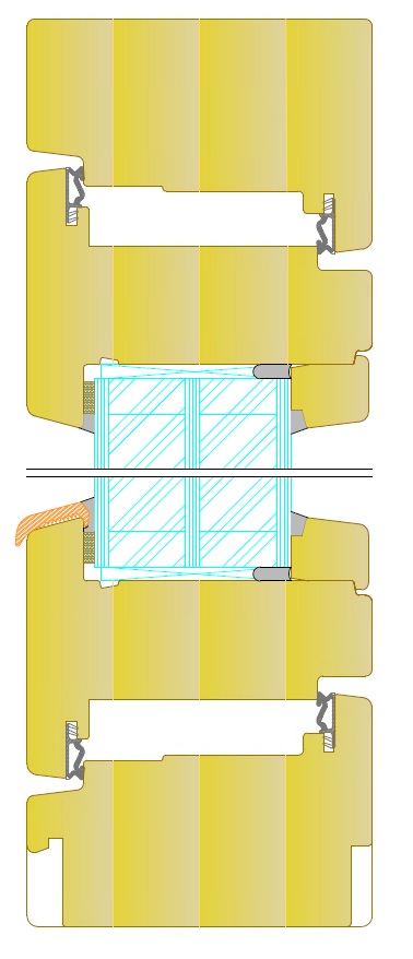 IV98 Softline +P profile is the same 98 mm profile but it has an insulated thermoplastic foam which improves a timber window heat transfer value up to Uw 0.68 W / m2K! Insulated timber profile can be bot both outward and inward opening windows and doors.